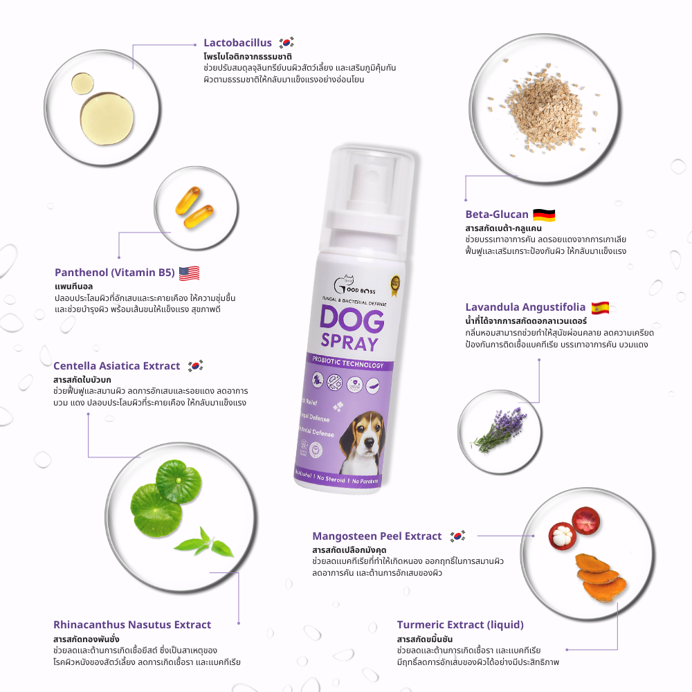 สเปรย์สูตรสำหรับสุนัขโดยเฉพาะ ที่ลดเเละป้องกันเชื้อรา ยีสต์ เเบคทีเรีย